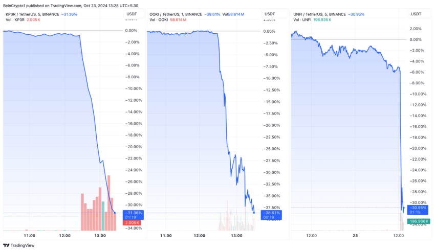 घोषणा के बाद, KP3R, OOKI, और UNFI जैसे टोकन्स की कीमतों में काफी गिरावट देखी गई।