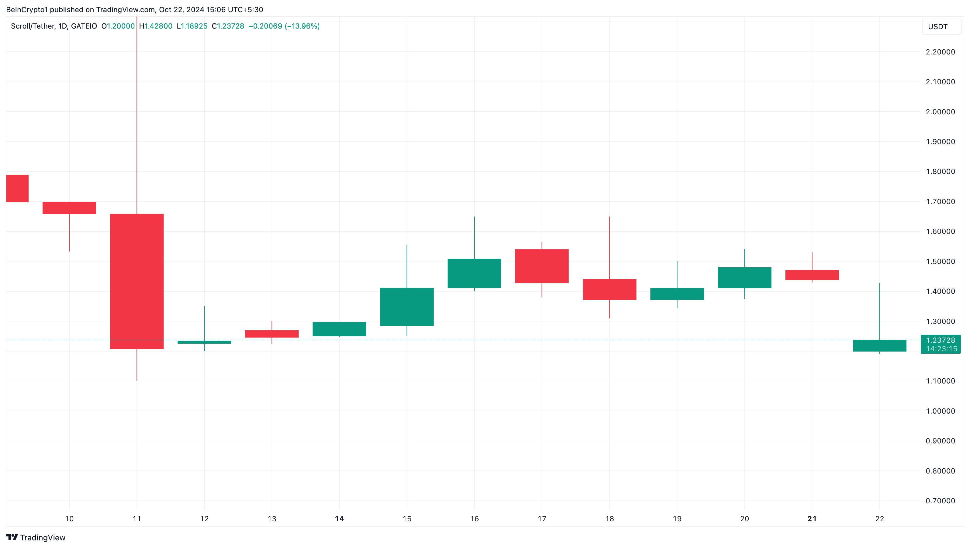 Scroll आज के ट्रेंडिंग अल्टकॉइन्स की सूची में सबसे ऊपर है क्योंकि इसका नेटिव टोकन, SCR है। सोमवार, 21 अक्टूबर को, Scroll, जो कि Ethereum पर बना एक प्रमुख जीरो नॉलेज रोलअप है, ने SCR के लॉन्च की घोषणा की। इसके आधिकारिक बयान के अनुसार, लॉन्च के साथ ही योगदानकर्ताओं और इसके समुदाय के लिए एक एयरड्रॉप भी आया है।