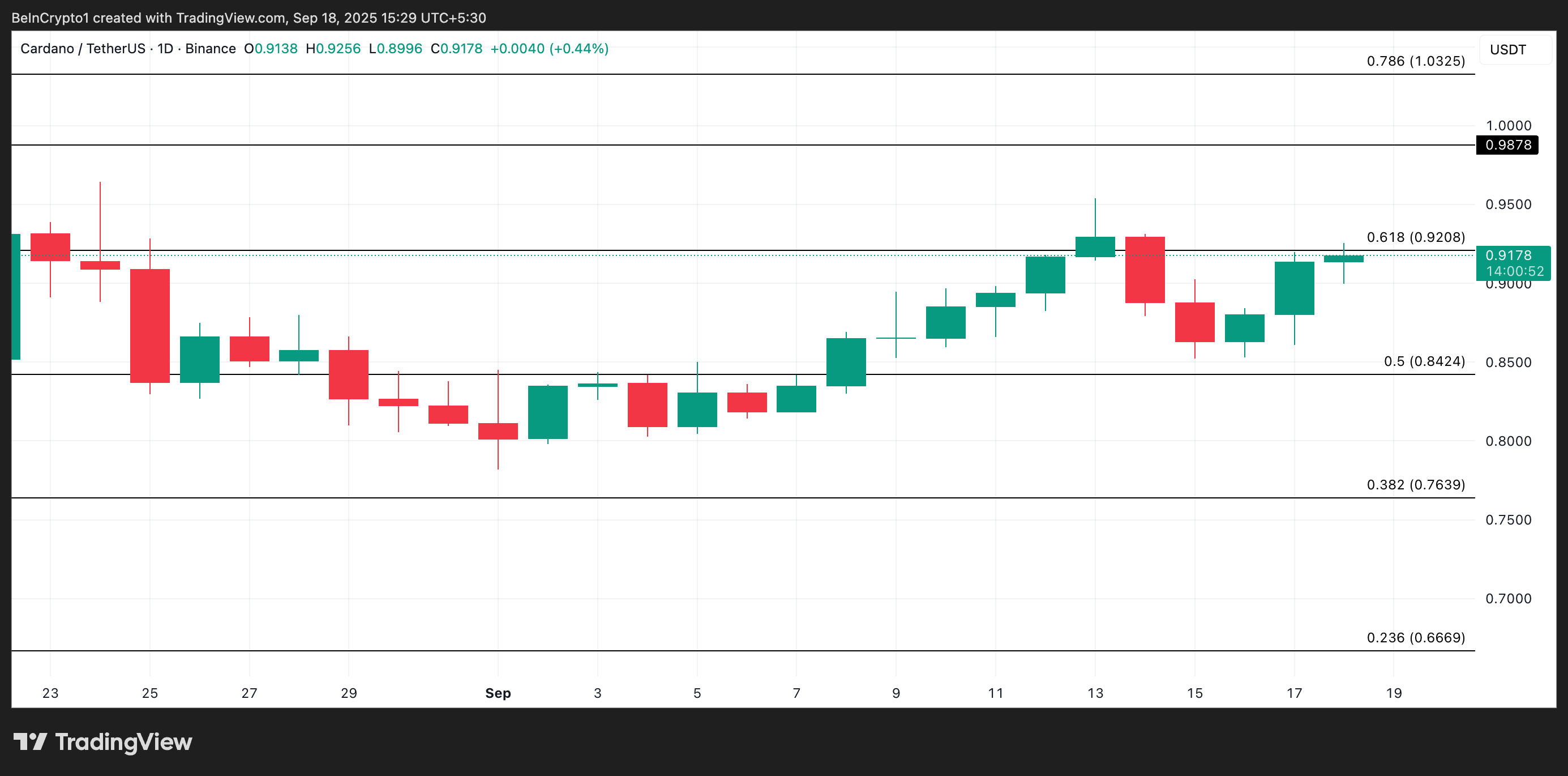 Cardano का ADA पिछले तीन दिनों में 12% बढ़ा है और अब एक महत्वपूर्ण रेजिस्टेंस लेवल का परीक्षण कर रहा है, जिसने मध्य-अगस्त से इसकी अपवर्ड को सीमित किया है।