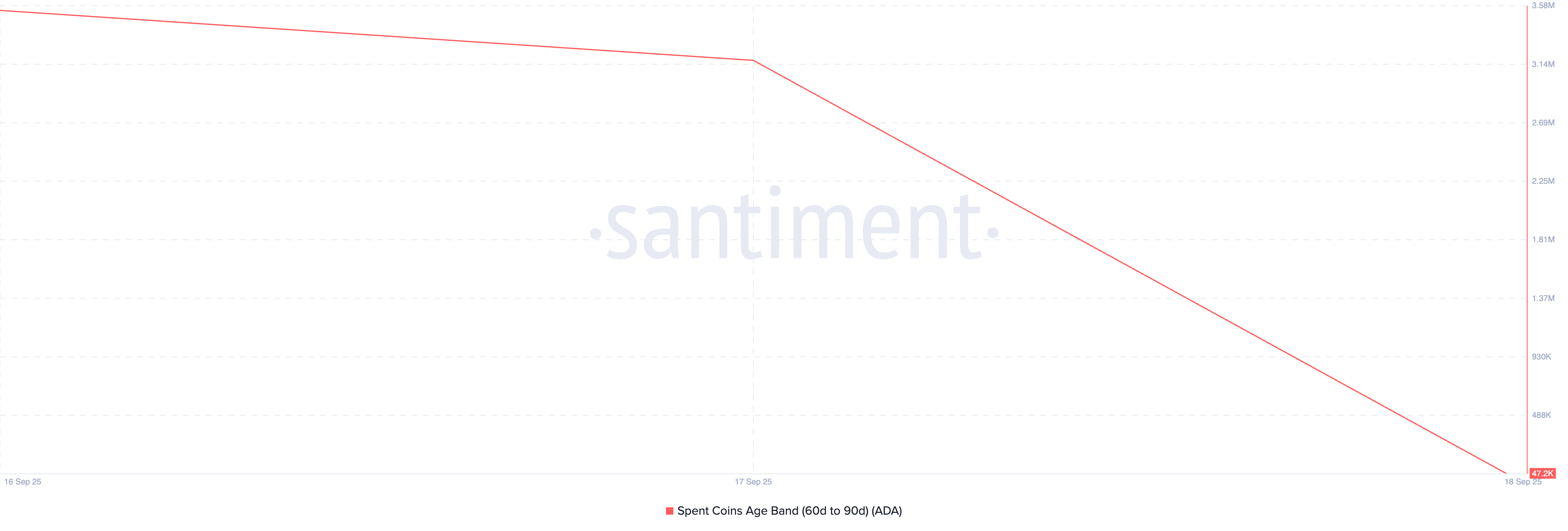 ADA के Spent Coins Age Band (30d–60d) का आकलन करने पर पता चलता है कि यह 16 सितंबर से लगातार गिर रहा है। प्रेस समय पर, यह 47,230 ADA पर है।