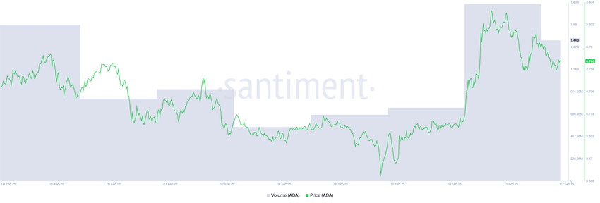 विशेष रूप से, ADA का दैनिक ट्रेडिंग वॉल्यूम इस मूल्य गिरावट के बीच बढ़ गया है। यह कुल $1.44 बिलियन है, जो पिछले 24 घंटों में 48% बढ़ा है।
