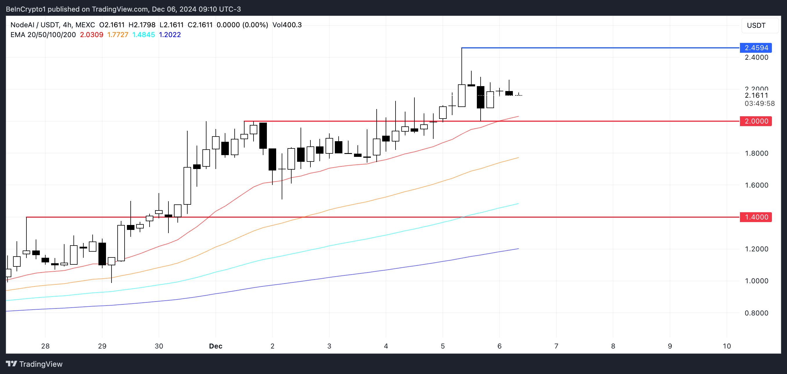 इस कॉइन ने अप्रैल 2024 में $2.74 की अपनी उच्चतम कीमत हासिल की, और वर्तमान बाजार में निरंतर ऊपर की ओर संभावनाएं दिखाई देती हैं। इस स्थिति में, $2.45 अगला महत्वपूर्ण प्रतिरोध स्तर है। इस निशान से ऊपर की सफलता GPU को नए रिकॉर्ड उच्च स्तर स्थापित करने की दिशा में प्रेरित कर सकती है।