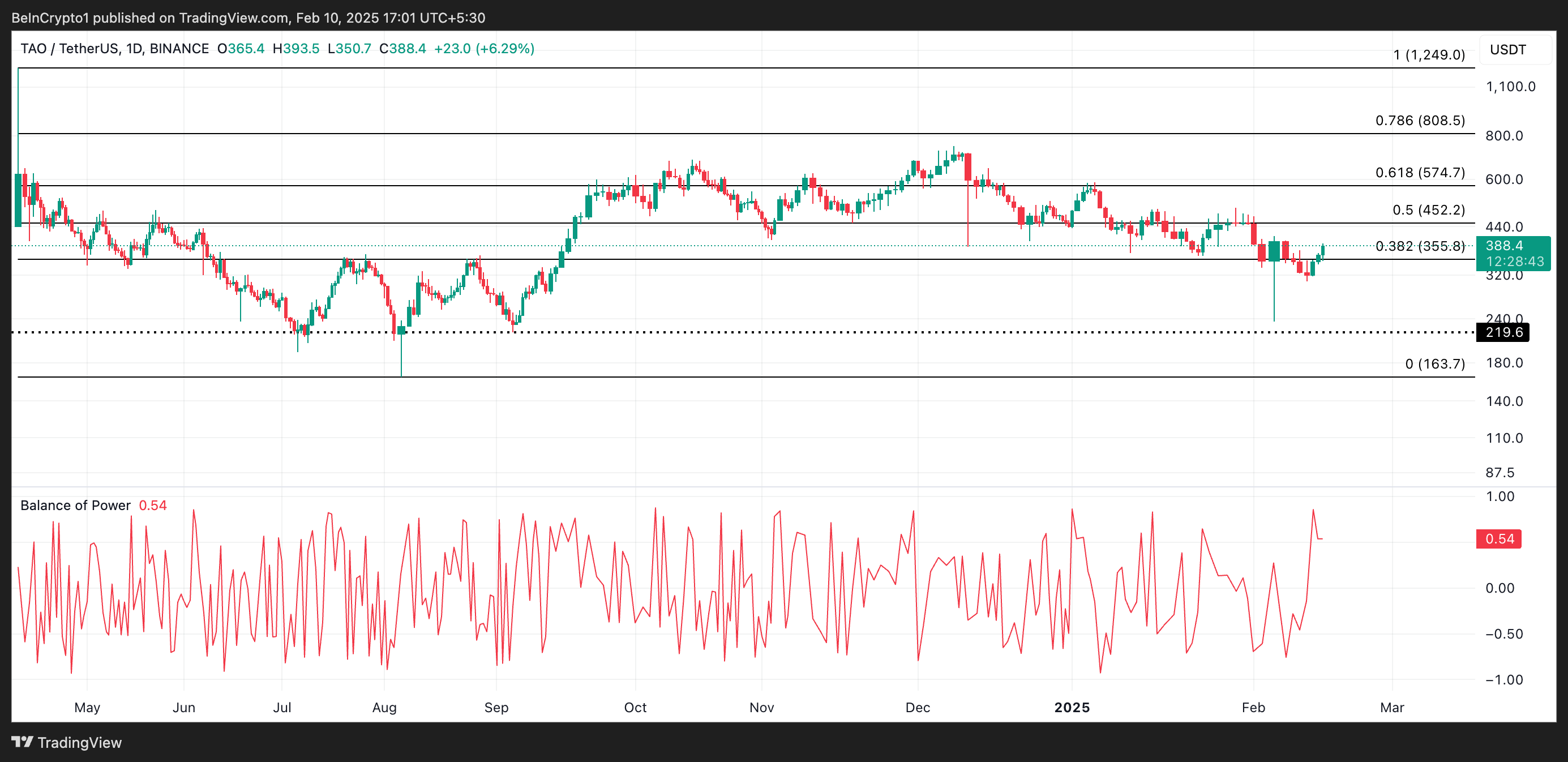 दूसरी ओर, सेल-ऑफ़ में वृद्धि इस बुलिश प्रोजेक्शन को अमान्य कर देगी। अगर TAO ट्रेडर्स प्रॉफिट लेना शुरू करते हैं, तो टोकन की कीमत $355.80 तक गिर सकती है।