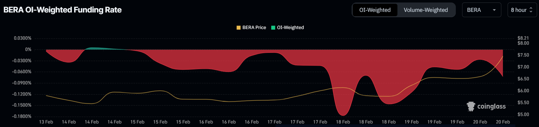 हाल की रैली के बावजूद, BERA की फंडिंग रेट गहराई से नकारात्मक बनी हुई है। यह इंगित करता है कि अधिकांश ट्रेडर्स क्रिप्टोकरेन्सी के खिलाफ शॉर्ट कॉन्ट्रैक्ट्स कर रहे हैं। ऐसी स्थिति यह दर्शाती है कि मार्केट प्रतिभागी आने वाले दिनों में एक पुलबैक की उम्मीद कर रहे हैं, संभावित गिरावट से लाभ उठाने के लिए।