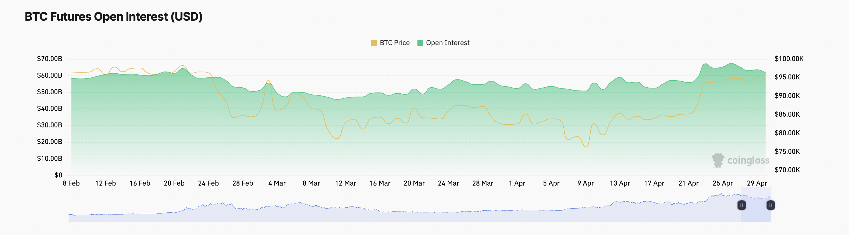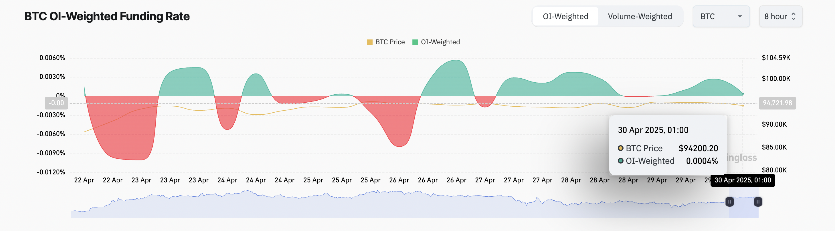 Bitcoin फ्यूचर्स मार्केट में ओपन इंटरेस्ट (OI) में आज मामूली गिरावट देखी गई है। यह संकेत देता है कि कुछ ट्रेडर्स पोजीशन्स बंद कर रहे हैं, जिससे लीवरेज्ड पोजीशन्स में कुछ ठंडक आई है।