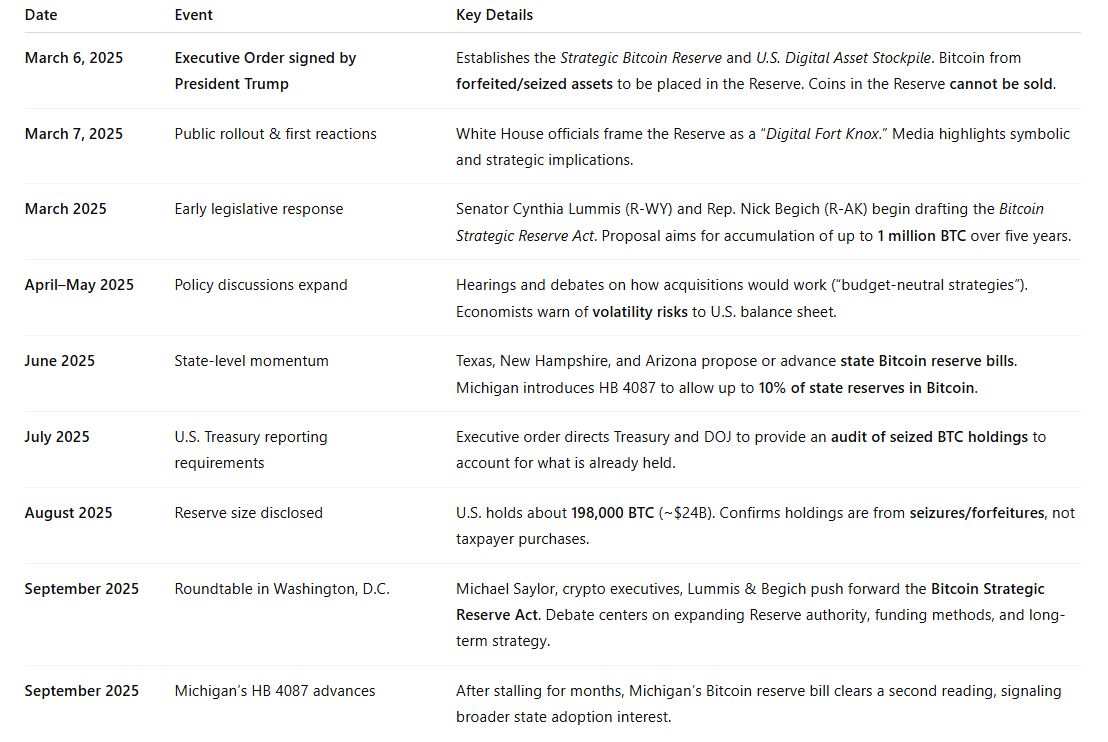 24 सितंबर 2025 तक, Bitcoin लगभग $112,000 के करीब ट्रेड कर रहा है, मध्य-महीने की तेज़ correction से उबरते हुए। इस साल US policy को लेकर व्यापक narrative काफी बदल गया है, खासकर मार्च में President Trump के executive order के बाद, जिसने Strategic Bitcoin Reserve बनाया।
