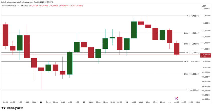 प्रेस समय में, Bitcoin प्राइस $111,000 के ठीक नीचे ट्रेड कर रहा है। इसने पहले ही $111,074 के आसपास एक प्रमुख समर्थन को तोड़ दिया है, और अगला तत्काल समर्थन $110,50 पर है, जिसमें गहरा सुरक्षा जाल $108,600 पर है।