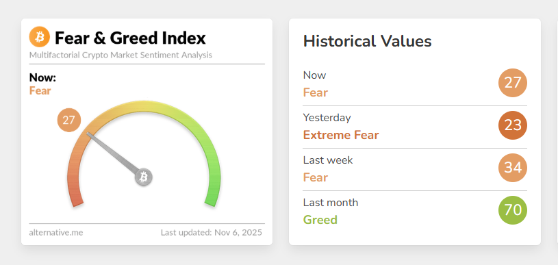 टेक्निकल इंडिकेटर्स दिखाते हैं कि Bitcoin $100,000 से $107,000 के बीच कंसोलिडेटिंग कर रहा है, जबकि भय और लालच सूचकांक “एक्सट्रीम फियर” ज़ोन में गहरा है।