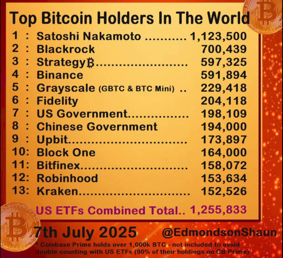 फिर भी, Bitcoin के सबसे बड़े धारक अब छद्म नाम वाले कोडर्स नहीं हैं, बल्कि Wall Street के दिग्गज हैं।