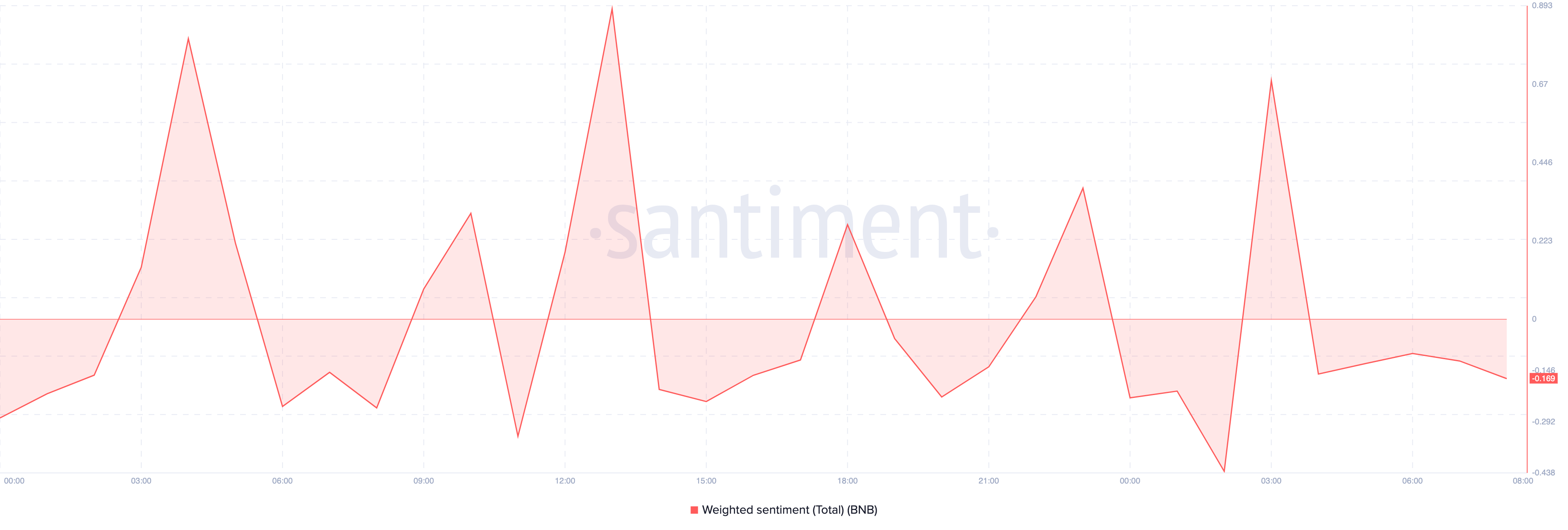 रोचकता से, BNB की कीमत एक समान स्थिति का सामना कर रही है। Santiment के डेटा के अनुसार, Binance Coin की Weighted Sentiment नकारात्मक क्षेत्र में गिर गई है, जिसका अर्थ है कि इस कॉइन के आसपास की चर्चाएँ वर्तमान में निराशावादी हैं।