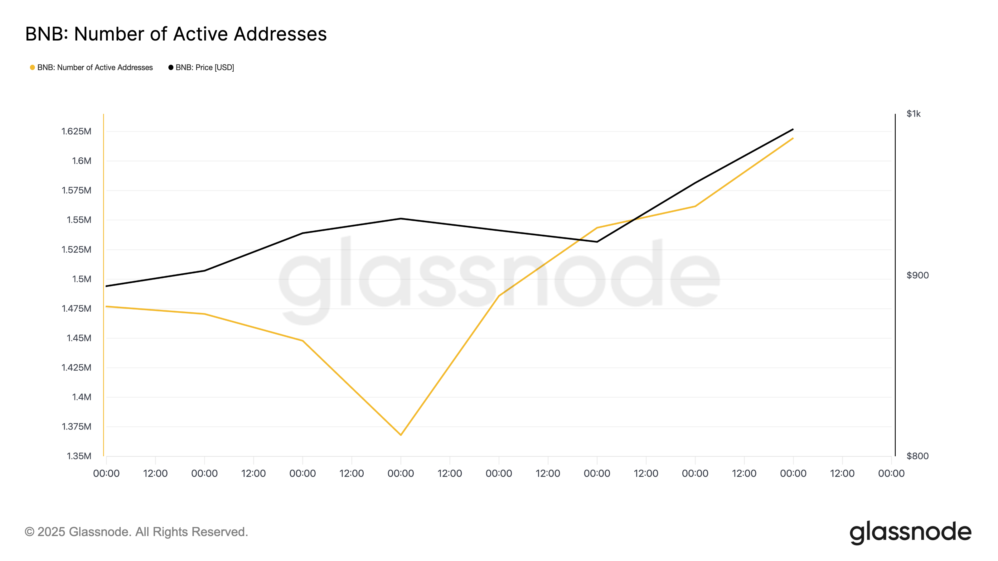 Glassnode के अनुसार, नेटवर्क पर सक्रिय अद्वितीय पतों की संख्या—चाहे वे भेजने वाले हों या प्राप्त करने वाले—पिछले सप्ताह में 10% बढ़ गई है।