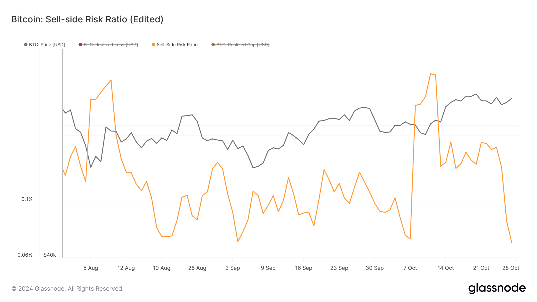 इसके अलावा, Bitcoin का बिक्री-पक्ष जोखिम अनुपात 3 सितंबर के बाद से अपने निम्नतम स्तर पर पहुँच गया है। आमतौर पर, इस अनुपात के उच्च मूल्य बाजार के शीर्ष या बुल मार्केट के अंतिम चरणों के साथ मेल खाते हैं।