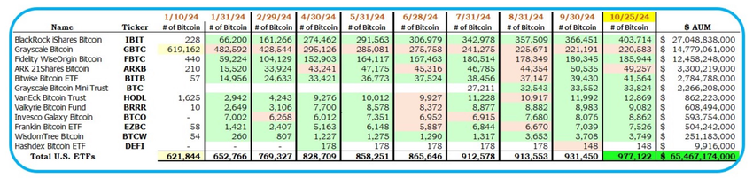 अक्टूबर की शुरुआत से, इन जारीकर्ताओं ने मिलकर 45,557 BTC खरीदे हैं। यह स्पॉट ETFs को 10 जनवरी, 2024 को मंजूरी मिलने के बाद से BTC खरीद के लिए चौथा सबसे ऊंचा महीना है।