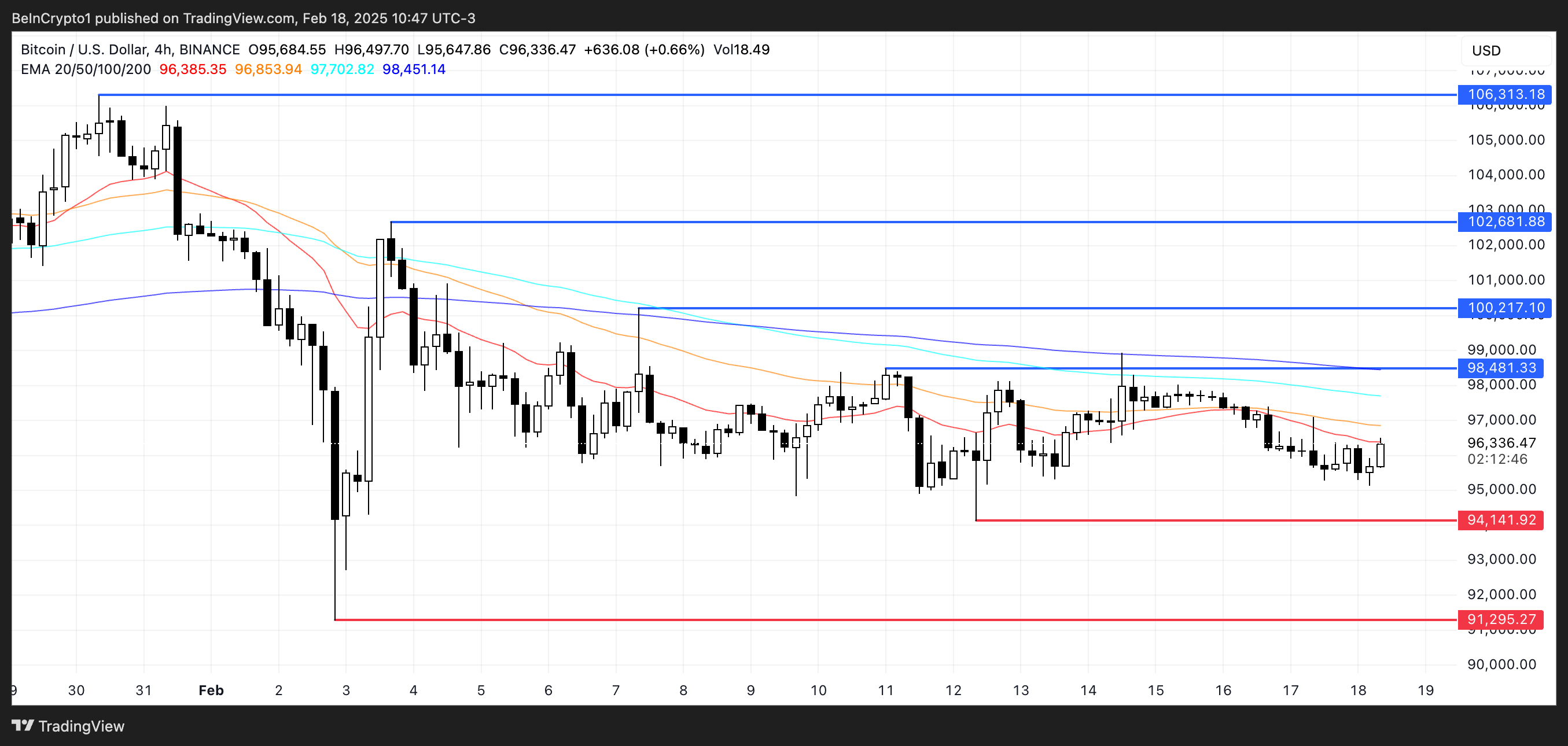 दूसरी ओर, यदि डाउनट्रेंड जारी रहता है और तेज होता है, तो BTC की कीमत $94,141 पर महत्वपूर्ण समर्थन का परीक्षण कर सकती है।