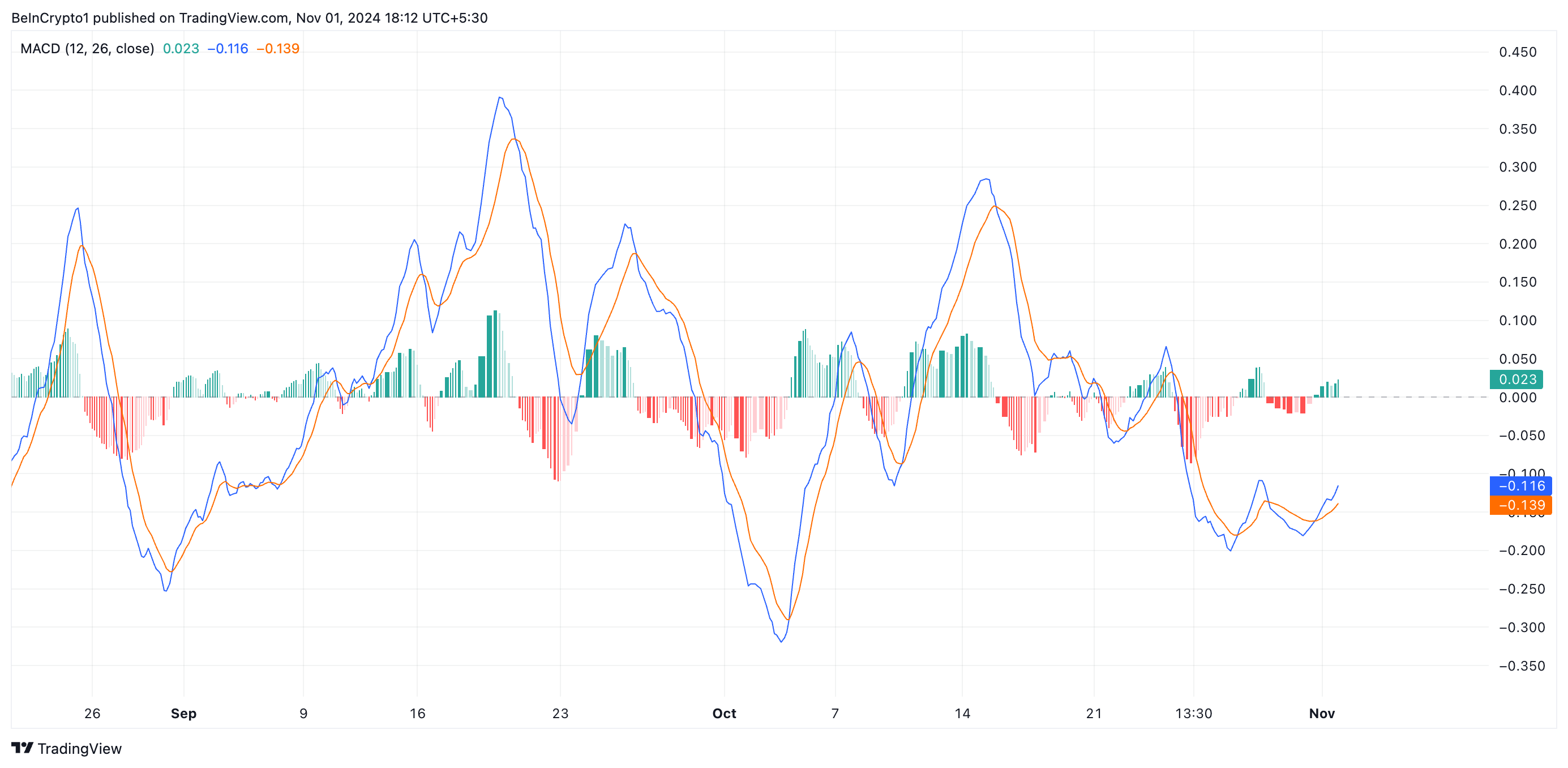इसके अलावा, TIA का मूविंग एवरेज कन्वर्जेंस/डाइवर्जेंस (MACD), जो कि एक एसेट की कीमत के रुझानों और गति को मापता है और इसके संभावित खरीद या बिक्री संकेतों की पहचान करता है, इस बुलिश दृष्टिकोण की पुष्टि करता है।