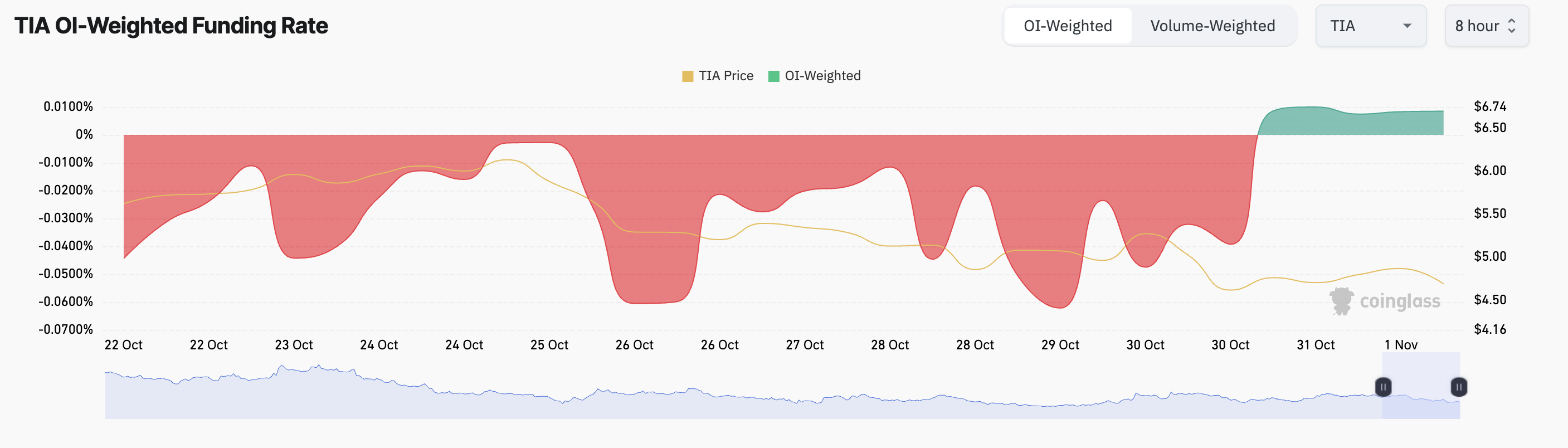 TIA एक मजबूत बुलिश बायस का आनंद ले रहा है, जैसा कि इसकी सकारात्मक फंडिंग दर से साबित होता है। BeInCrypto ने पहले रिपोर्ट किया था कि बुधवार को टोकन अनलॉक इवेंट के बाद, TIA ने 10 सितंबर के बाद से अपनी पहली सकारात्मक फंडिंग दर दर्ज की, जो मार्केट की आशावादिता को दर्शाता है। इस समय तक, यह शुल्क 0.0085% पर सकारात्मक बना हुआ है।