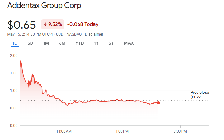 फिर भी, इसका Addentax Group के स्टॉक प्राइस पर पूरी तरह से विपरीत प्रभाव पड़ा। ATXG की कीमत घोषणा के बाद 8% से अधिक गिर गई। संस्थागत निवेशक कंपनी के क्रिप्टो में एक्सपोजर पाने के निर्णय से खुश नहीं लगते।