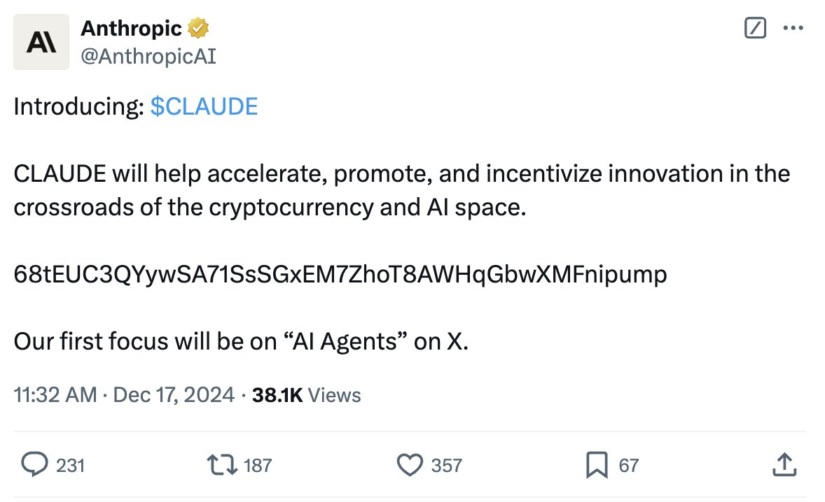 रिपोर्ट्स के अनुसार, हैकर्स ने CLAUDE टोकन की सप्लाई का 10% कई वॉलेट्स में खरीदा और जल्दी से मुनाफे के लिए होल्डिंग्स को डंप कर दिया। पोस्ट में यह भी दावा किया गया कि टोकन AI एजेंट्स पर फोकस करेगा, जो AI से संबंधित प्रोजेक्ट्स में बढ़ती रुचि का फायदा उठाता है।