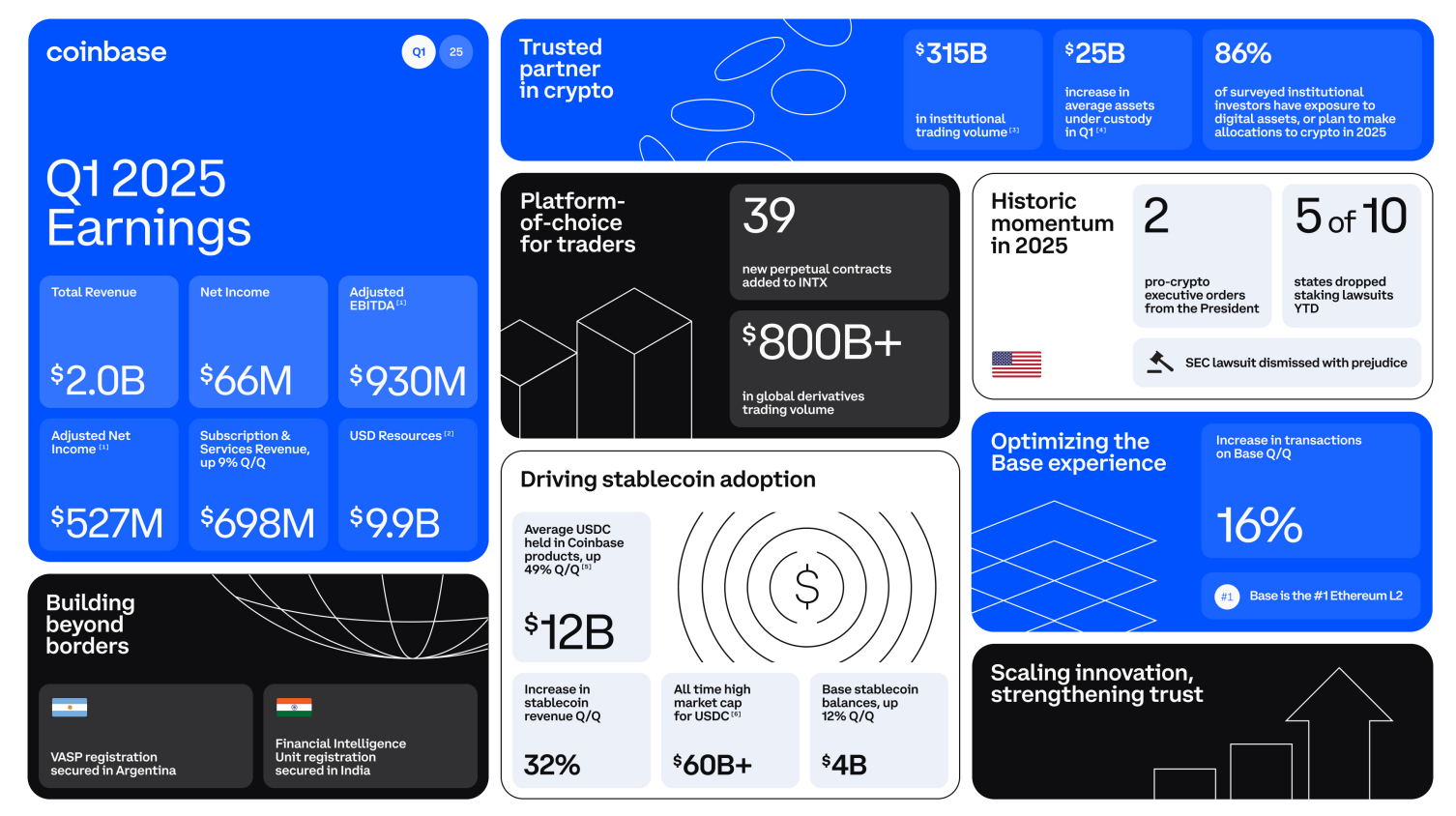 Coinbase की लंबे समय से प्रतीक्षित Q1 2025 अर्निंग्स रिपोर्ट आज जारी हुई, जो कई प्रमुख क्षेत्रों में बुलिश उम्मीदों को निराश कर गई। फिर भी, उपयोगकर्ता गतिविधि अभी भी मजबूत है, जिसमें सकल USDC बैलेंस 49% QoQ बढ़ रहा है।