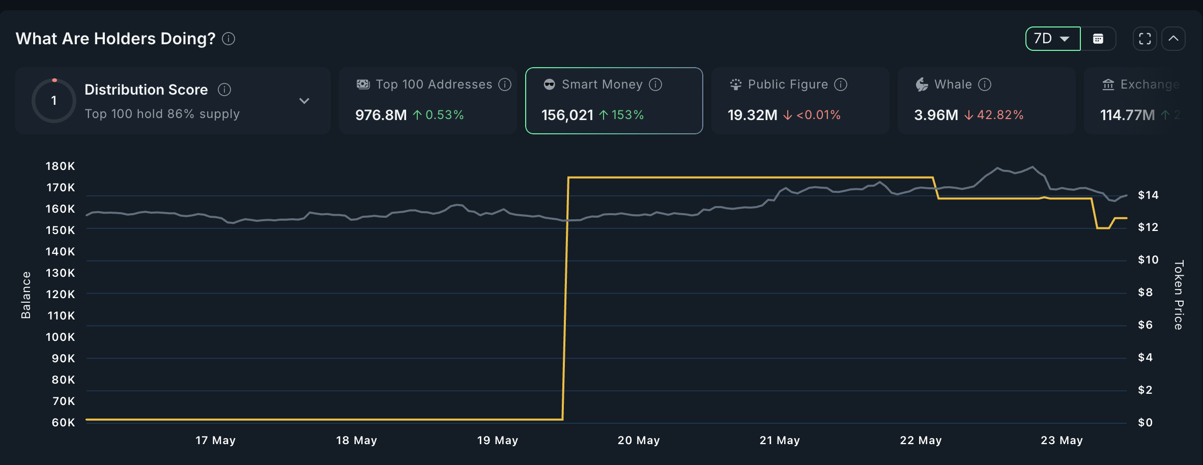 Smart Money आमतौर पर हेज फंड्स और संस्थागत खिलाड़ियों को शामिल करता है जो बाजार में सही समय पर कदम उठाने के लिए जाने जाते हैं। TRUMP के इनफ्लो में वृद्धि इसके निकट-भविष्य की संभावनाओं में विश्वास का संकेत देती है और अगर मोमेंटम बना रहता है तो यह एक निरंतर अपवर्ड ट्रेंड का पूर्वाभास कर सकती है।