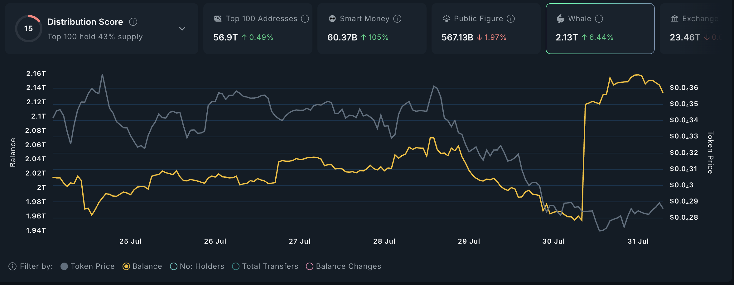 TRX ने 22 जून से एक अपवर्ड पैरेलल में ट्रेंड किया है, जिसमें 24% की प्राइस वृद्धि देखी गई है। 29 जुलाई तक, इस altcoin ने $0.35 का छह महीने का उच्चतम स्तर छू लिया था, जो व्हेल्स की बढ़ती खरीदारी के कारण हुआ।