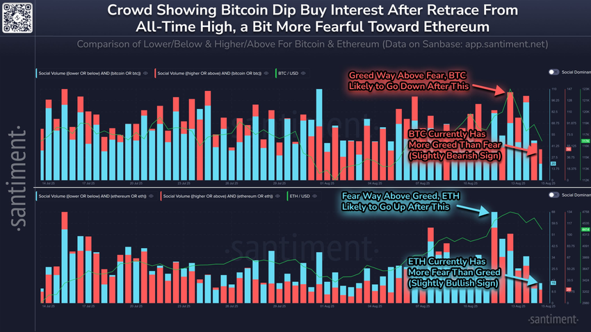 इसको ध्यान में रखते हुए, ब्लॉकचेन एनालिटिक्स प्लेटफॉर्म Santiment सुझाव देता है कि Ethereum वर्तमान में मार्केट सेंटिमेंट में Bitcoin पर एक मामूली शॉर्ट-टर्म लाभ बनाए रखता है।