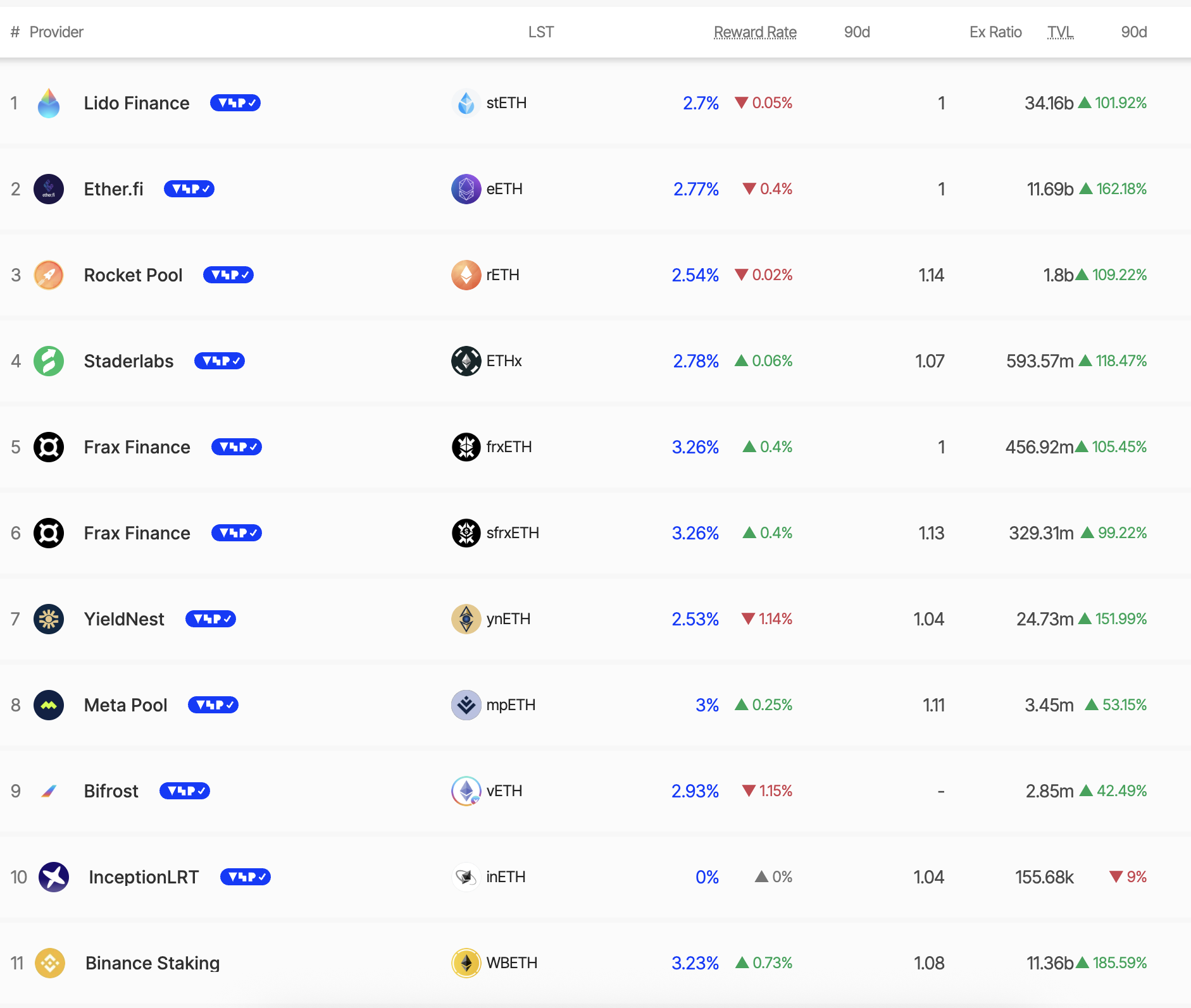 छोटे प्लेयर्स के लिए, लिक्विड स्टेकिंग प्रोटोकॉल जैसे Lido, Frax Finance, और Rocket Pool ने फ्रैक्शनल स्टेकिंग के दरवाजे खोले हैं। ये प्लेटफॉर्म वर्तमान में 2.5 प्रतिशत से 3.3 प्रतिशत के बीच यील्ड्स ऑफर करते हैं, और इस तिमाही में कुल डिपॉजिट्स 100 प्रतिशत से अधिक बढ़े हैं, रैली के दौरान। (अधिकांश प्लेयर्स के लिए)।