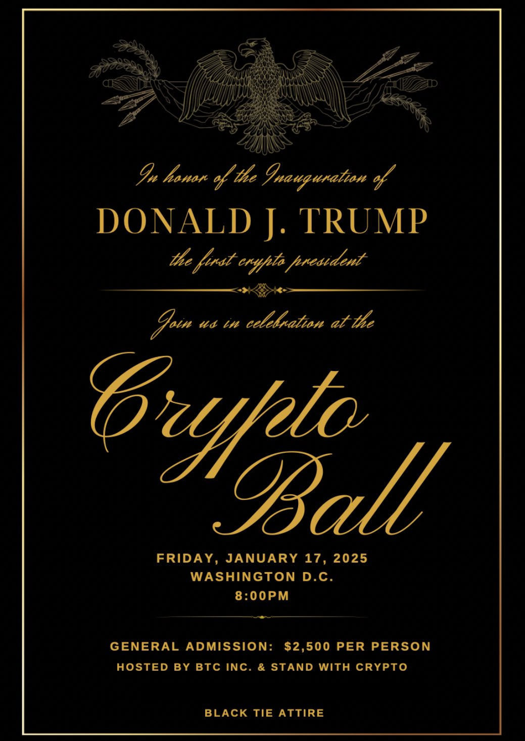 पहली बार “Crypto Ball” शुक्रवार, 17 जनवरी को आयोजित होने जा रही है, जो राष्ट्रपति-चुनाव डोनाल्ड ट्रम्प के 20 जनवरी के inauguration से कुछ दिन पहले है।