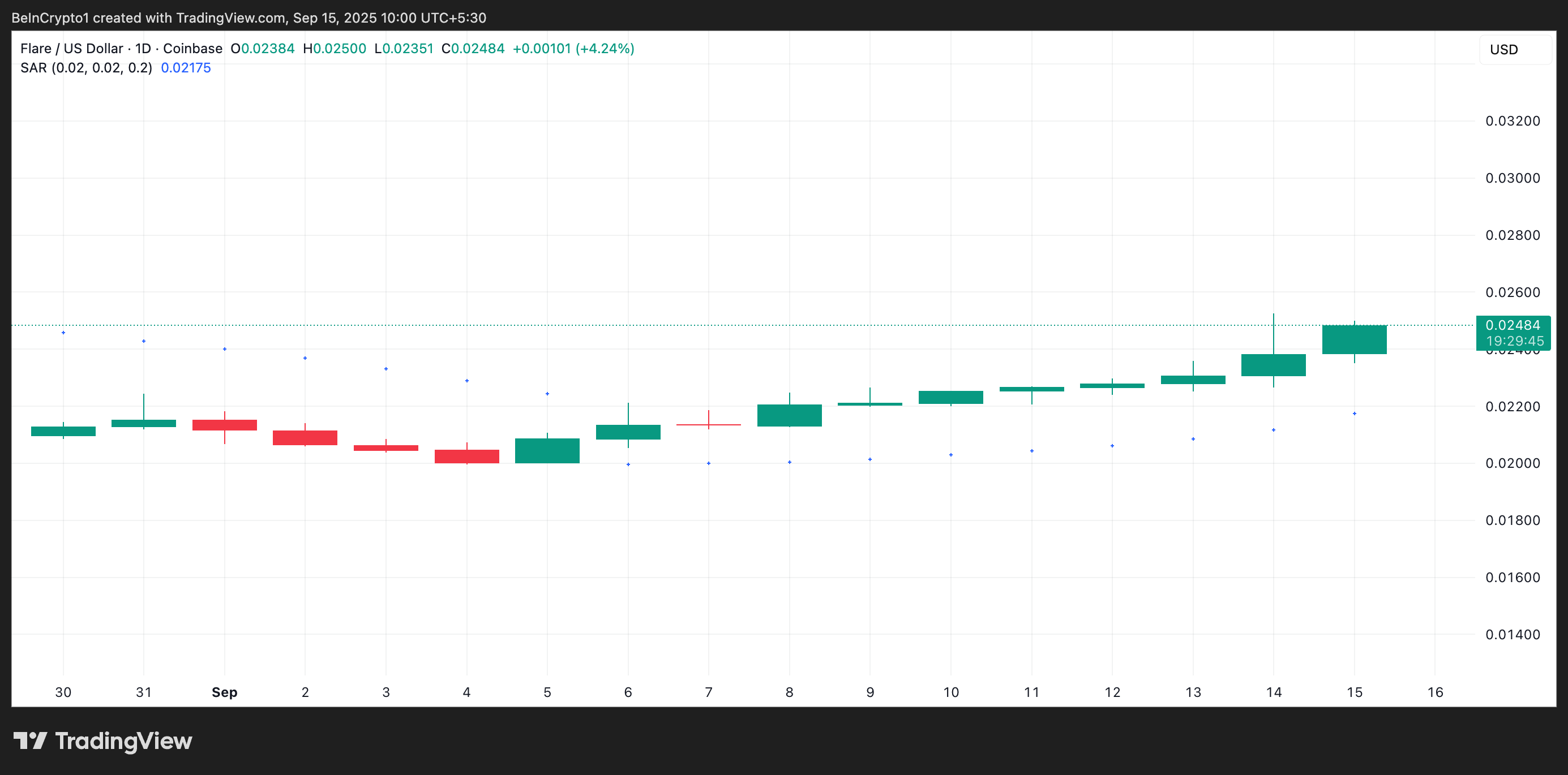 इसके अलावा, दैनिक चार्ट पर, टोकन अपने Parabolic Stop and Reverse (SAR) इंडिकेटर के ऊपर स्थित है, जो इस बुलिश आउटलुक को और बढ़ाता है। वर्तमान में, SAR टोकन की प्राइस के नीचे $0.02175 पर डायनामिक सपोर्ट बनाता है, जो खरीदारों के लिए एक संभावित सुरक्षा जाल के रूप में कार्य करता है।
