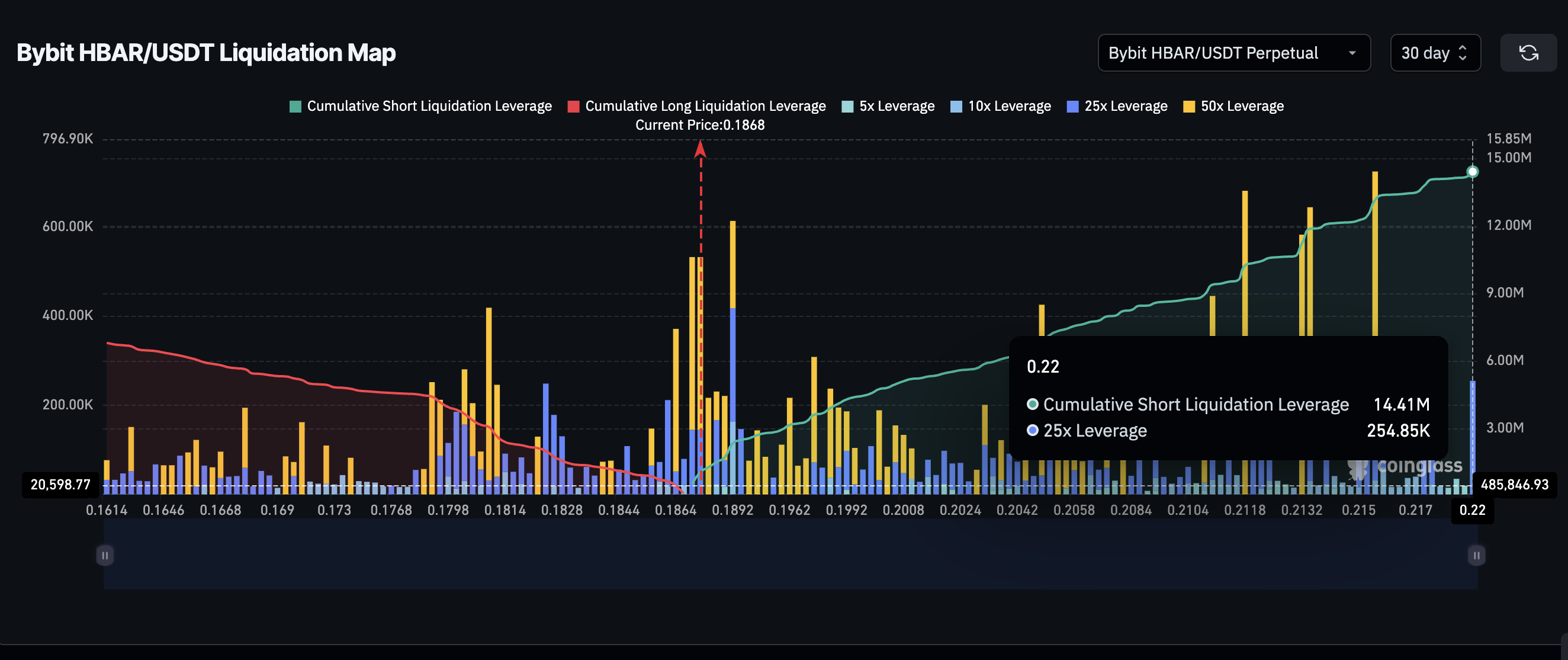 यह एकतरफा पोजीशनिंग एक क्लासिकल शॉर्ट-स्क्वीज़ स्थिति बनाता है। अगर HBAR प्राइस $0.18–$0.22 के बीच में आता है, तो शॉर्ट साइड वाले ट्रेडर्स को कवर करना पड़ सकता है, जिससे और भी खरीदारी का दबाव बनेगा।
