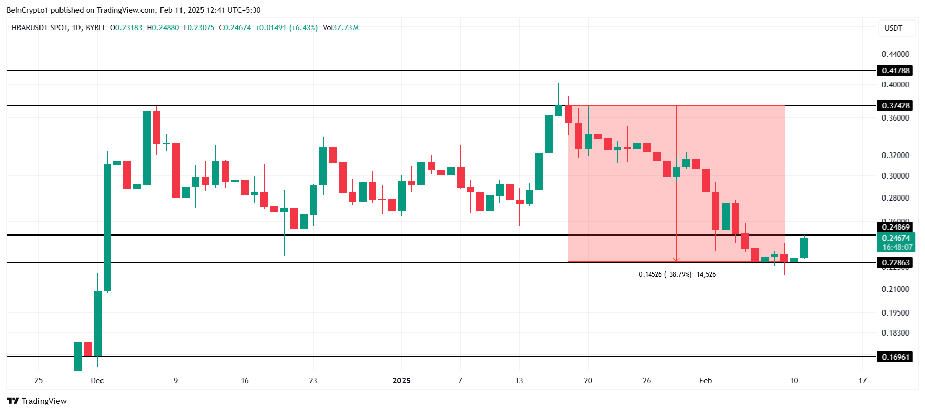 हाल ही में HBAR ने 40% की तेज प्राइस क्रैश का सामना किया है, जिससे निवेशकों में चिंता बढ़ गई है। इस महत्वपूर्ण गिरावट के बावजूद, altcoin ने $0.228 के एक महत्वपूर्ण सपोर्ट लेवल के ऊपर बने रहकर अपनी मजबूती दिखाई है।