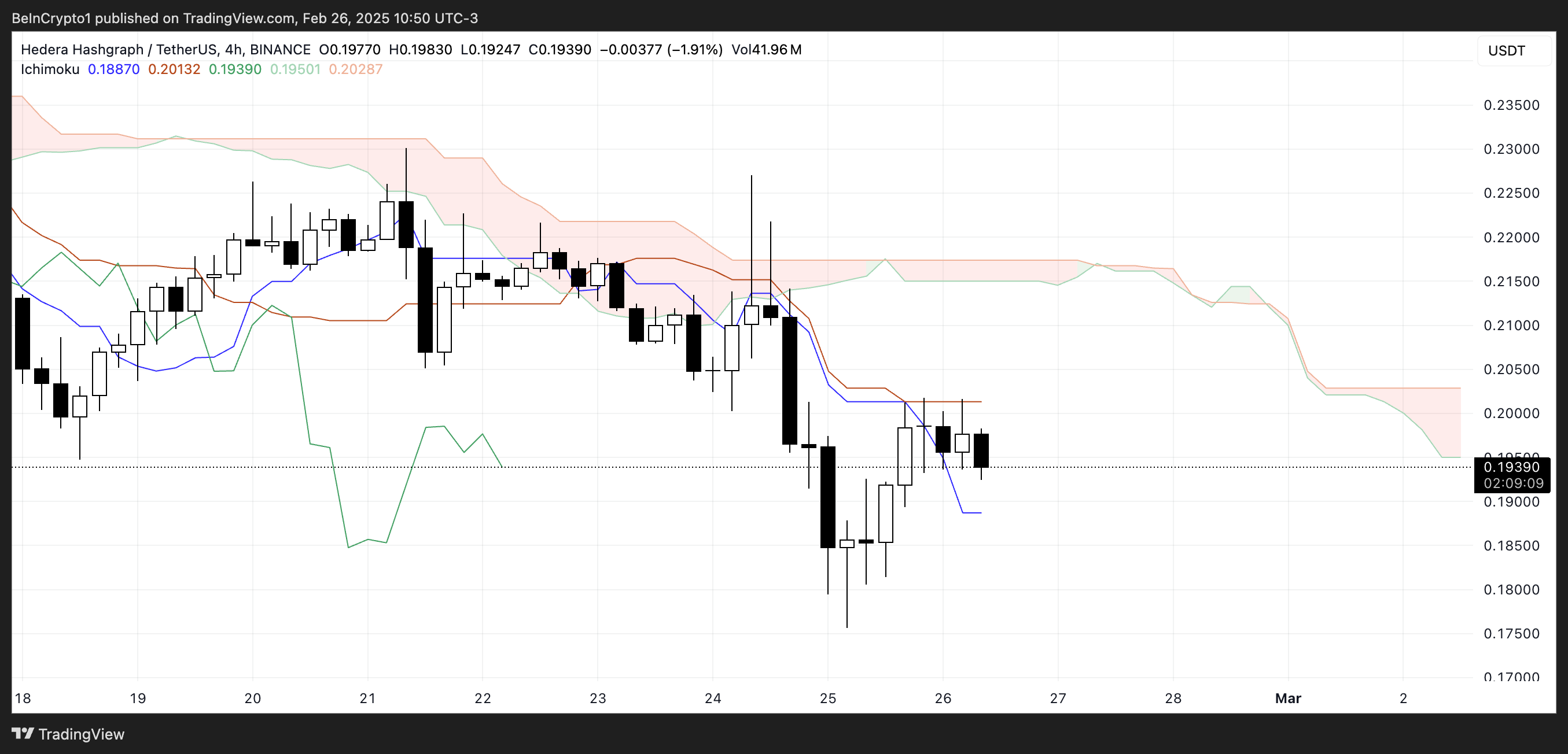 HBAR Ichimoku Cloud नेगेटिव तस्वीर दिखा रहा है