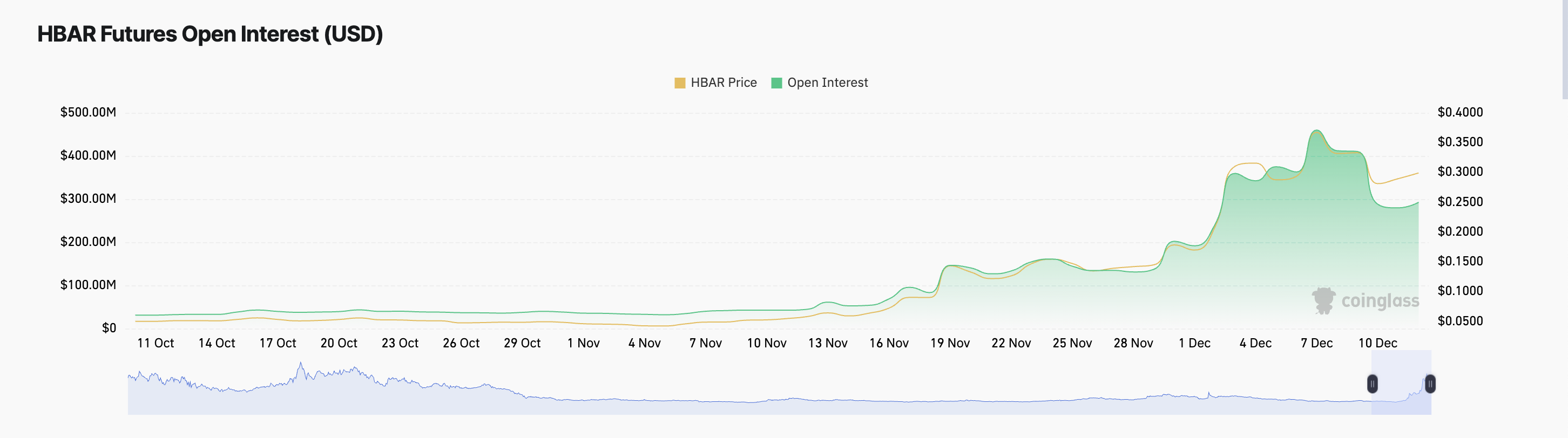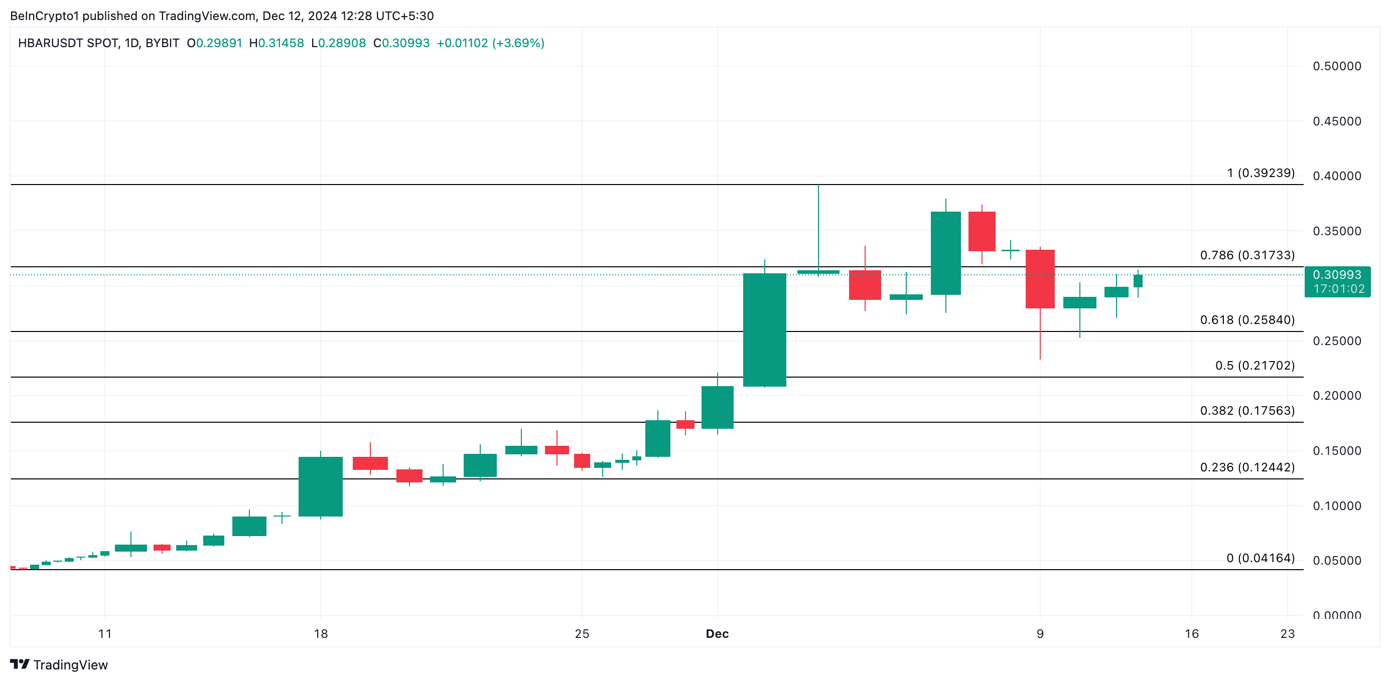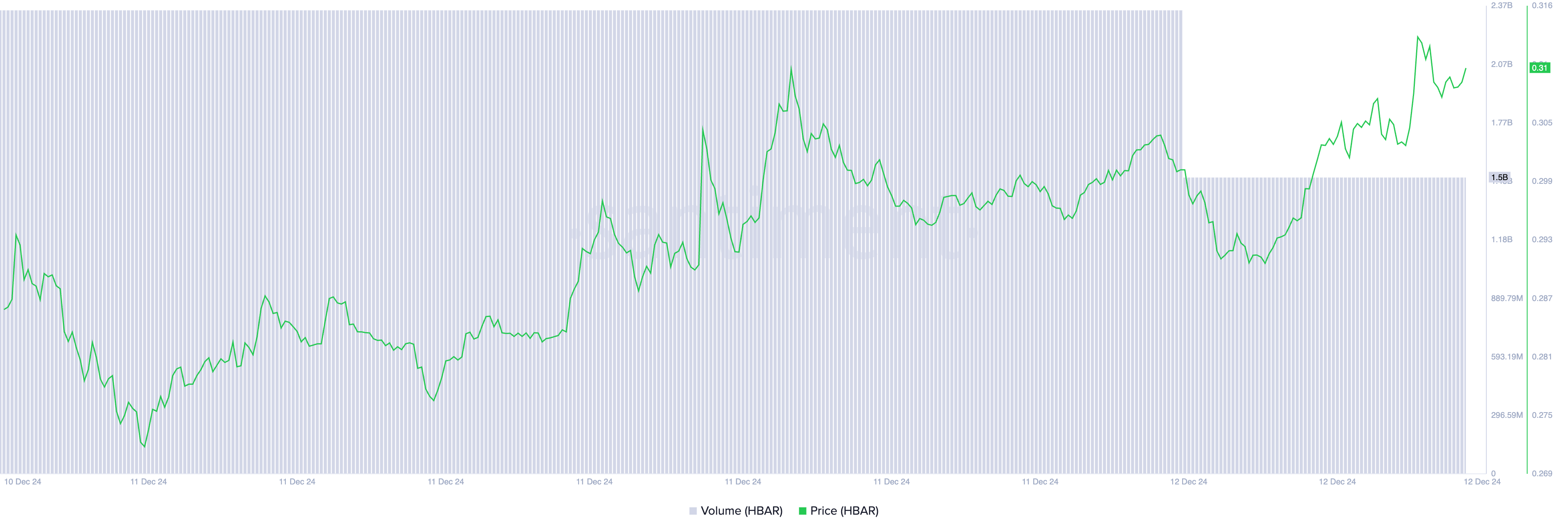 HBAR, हेडेरा हैशग्राफ नेटवर्क की मूल क्रिप्टोकरेंसी, ने पिछले 24 घंटों में 8% की वृद्धि की है। यह उछाल कुछ दिनों की गिरावट के बाद आया है जब अल्टकॉइन ने 3 दिसंबर को $0.39 के तीन साल के उच्च स्तर को छू लिया था।