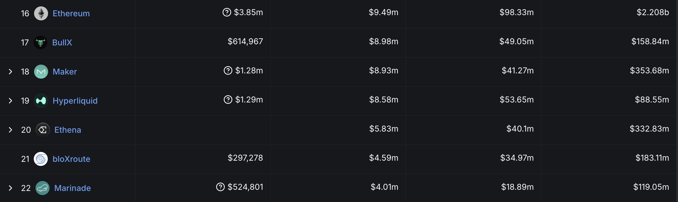 प्लेटफॉर्म ने पिछले सात दिनों में $8.5 मिलियन से अधिक का रेवेन्यू उत्पन्न किया, Ethena और Marinade जैसे उल्लेखनीय प्रोजेक्ट्स को पार करते हुए, जबकि Maker, BullX, और Ethereum के करीब पहुंच रहा है।