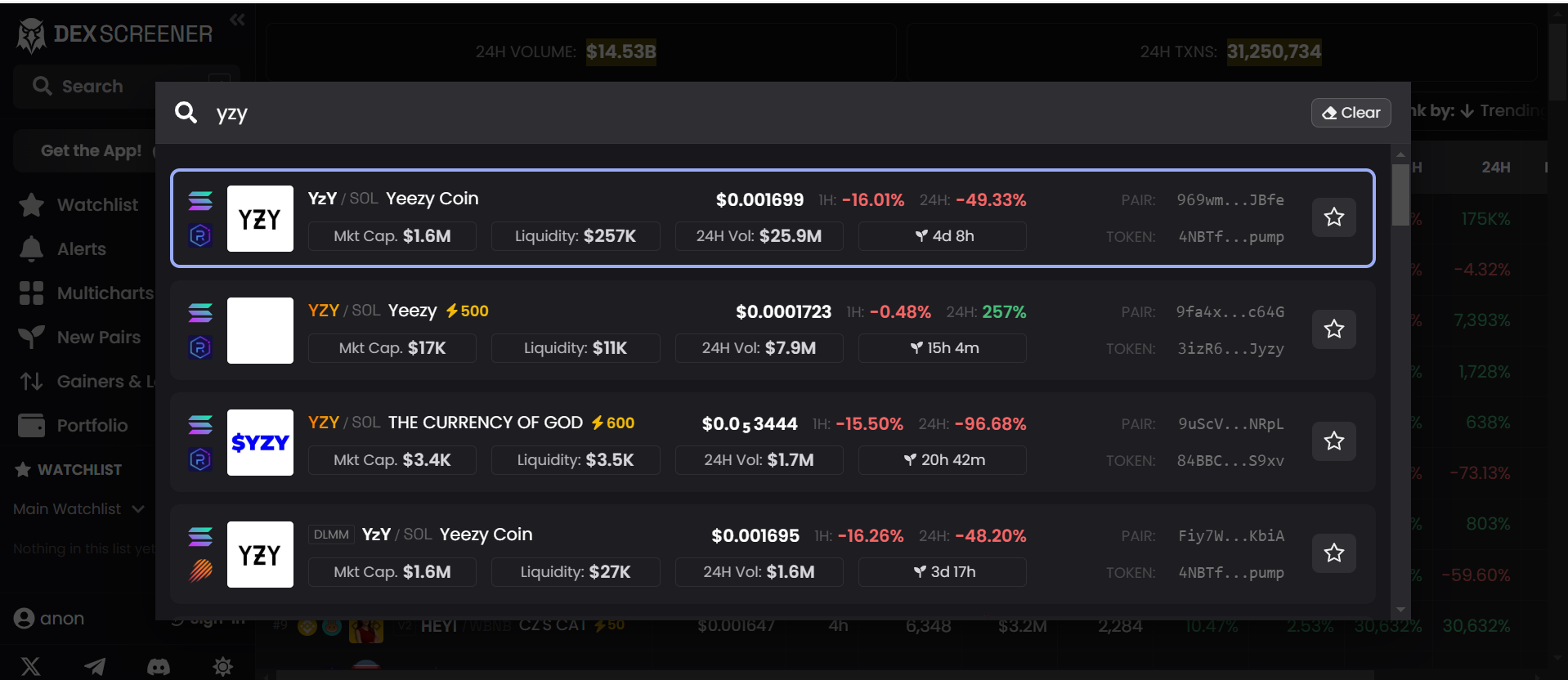 Ye की घोषणा के बाद कई YZY-ब्रांडेड टोकन्स के Solana-आधारित लॉन्चपैड Pump.fun पर दिखाई देने की रिपोर्ट्स आईं। इन घटनाक्रमों ने अटकलों को हवा दी कि वह वास्तव में एक टोकन लॉन्च की योजना बना रहे थे।