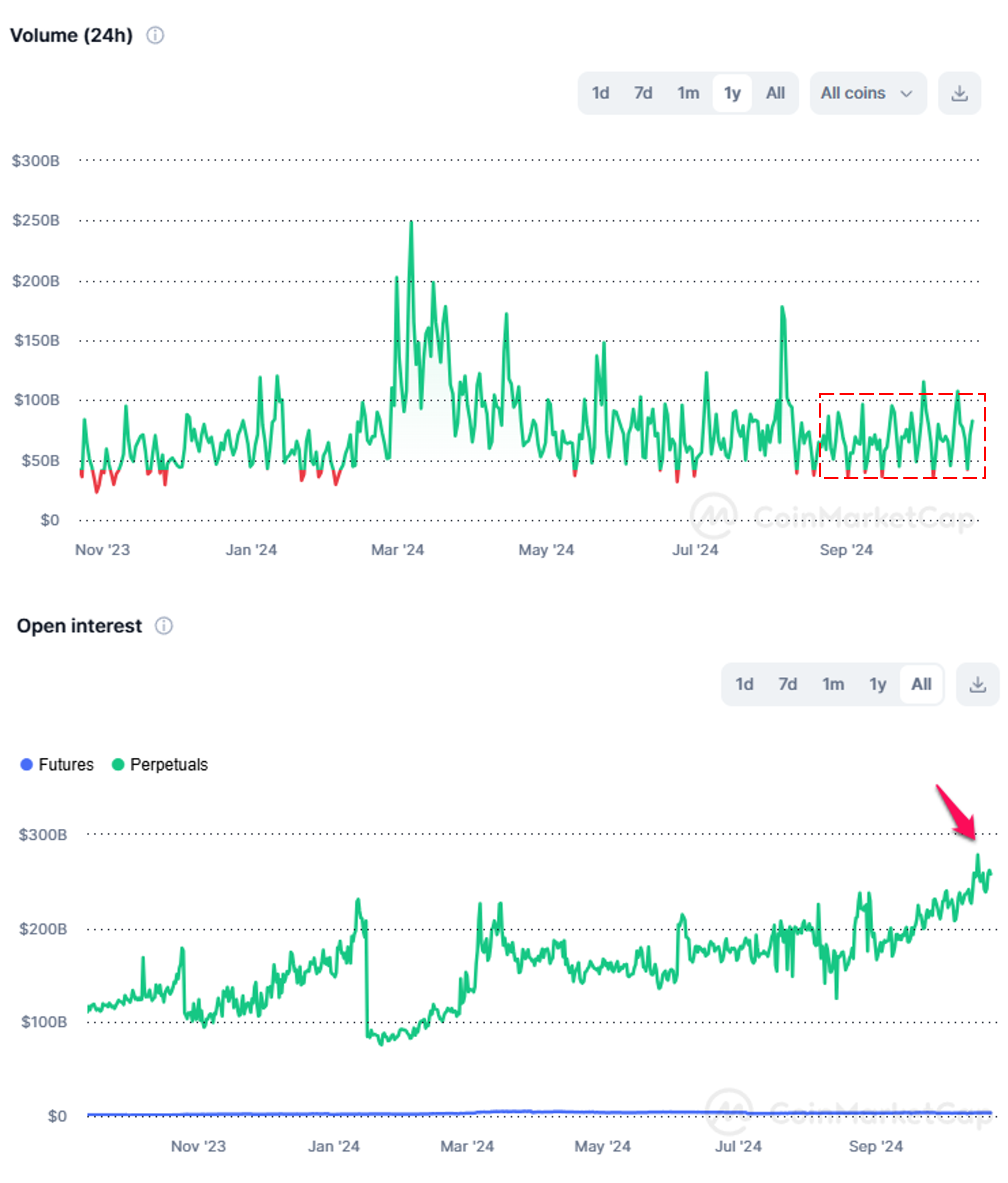 हालांकि, डेरिवेटिव्स ट्रेडिंग वॉल्यूम में पिछले दो महीनों में तेजी आई है। अक्टूबर तक, कुल ओपन इंटरेस्ट $260 बिलियन से अधिक हो गया, जो एक वर्ष में सबसे अधिक है। इससे यह संकेत मिलता है कि खुदरा निवेशक स्पॉट ट्रेडिंग की तुलना में डेरिवेटिव्स की ओर अधिक झुकाव रखते हैं।