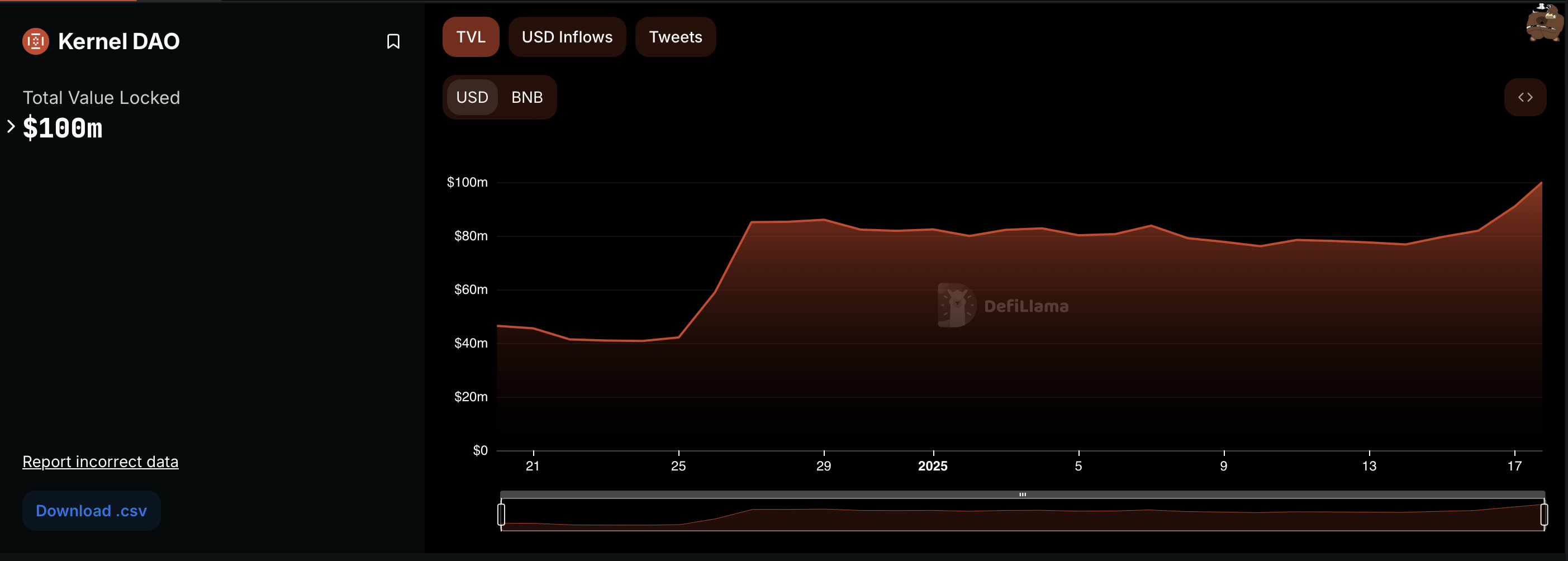 KernelDAO TVL $100 मिलियन से अधिक हो गया