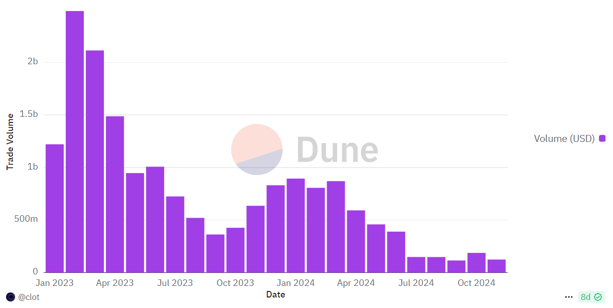 2024 के दौरान, 98% NFT कलेक्शंस ने बहुत कम या कोई ट्रेडिंग गतिविधि नहीं देखी। केवल 0.2% नए NFT ड्रॉप्स ने लाभ उत्पन्न किया, जबकि अधिकांश ने कुछ ही दिनों में अपनी मूल्य का 50% से अधिक खो दिया।