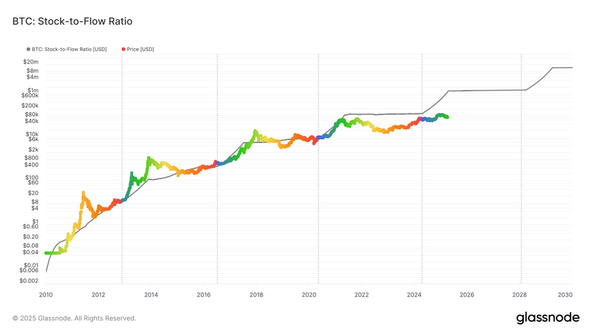 हालाँकि, बिटकॉइन, जिसमें एक प्रोग्रामेटिक रूप से घटती फ्लो और निश्चित कैप है, का S2F और भी अधिक है। यह तकनीकी रूप से इसे एक अधिक कठोर मौद्रिक संपत्ति बनाता है, हालांकि यह अभी भी एक वैश्विक हेज के रूप में अपनी स्वीकृति के शुरुआती चरण में है।
