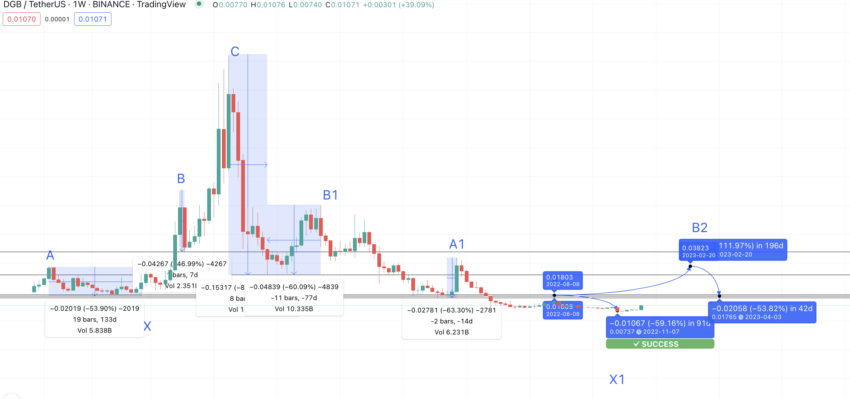 इसके अलावा, 2023 को कम ध्यान में रखते हुए, 2024 का निचला स्तर $0.038 पर हो सकता है, जो हमारी गणना के अनुसार डीजीबी की अपेक्षित कीमत है। यदि अगला निम्न पिछले उच्च से अधिक या बराबर है, तो DigiByte की कीमत काफी बढ़ सकती है, क्योंकि एक तेजी की प्रवृत्ति सामने आएगी।