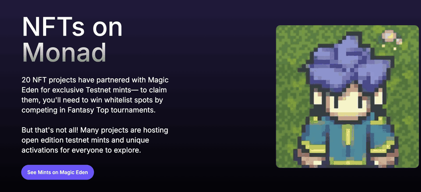 परियोजनाएं अक्सर शुरुआती टेस्टनेट उपयोगकर्ताओं को पुरस्कृत करती हैं, और Monad के DApp, engagement प्रदर्शित करने का एक शानदार तरीका है।