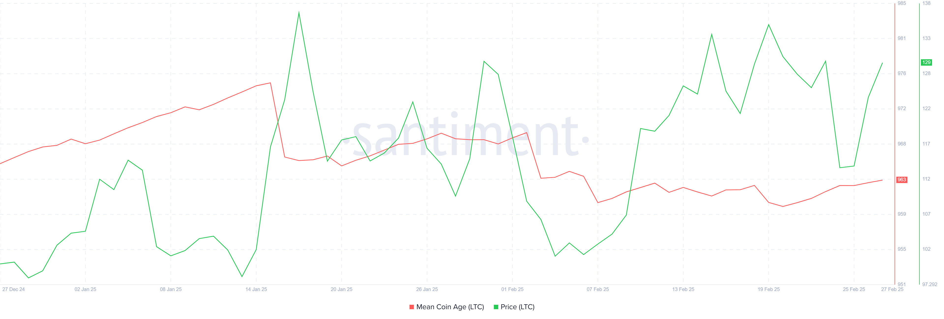 Litecoin के लॉन्ग-टर्म होल्डर्स (LTHs) ने हाल ही में Mean Coin Age (MCA) इंडिकेटर के अनुसार महत्वपूर्ण बुलिश व्यवहार नहीं दिखाया है। ध्यान देने योग्य वृद्धि की कमी न्यूनतम संचय का सुझाव देती है, जिससे बाजार स्थिर बना हुआ है। यदि MCA इंडिकेटर में महत्वपूर्ण गिरावट दिखाई देती है, तो यह संकेत दे सकता है कि LTHs अपनी होल्डिंग्स को सेल-ऑफ़ कर रहे हैं, जो एक bearish संकेत होगा। हालांकि, चूंकि ऐसा नहीं हो रहा है, Litecoin एक तेज़ गिरावट से बच सकता है लेकिन फिर भी लॉन्ग-टर्म निवेश को आकर्षित करने में संघर्ष कर रहा है।