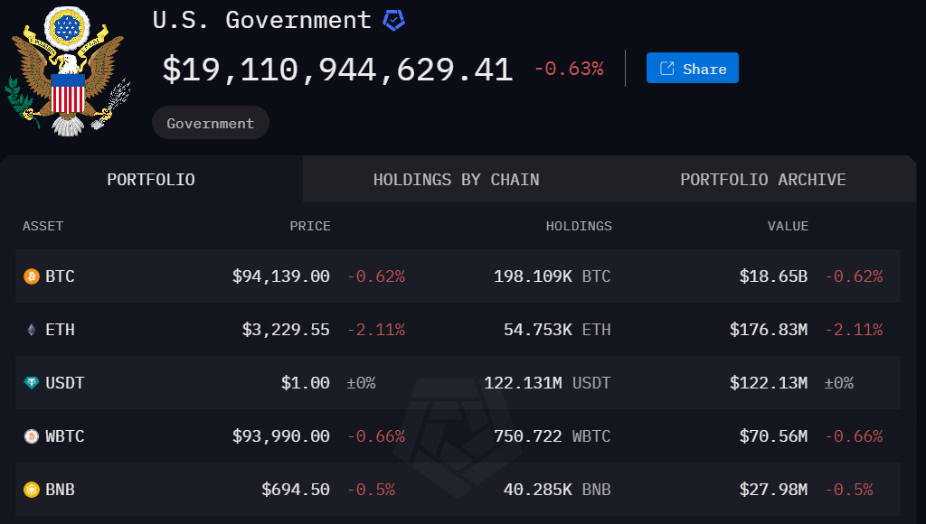 वर्तमान में, अमेरिकी सरकार के पास लगभग 200,000 BTC हैं, जिनकी कीमत $18 बिलियन से अधिक है, जिससे यह ग्लोबल स्तर पर सबसे बड़ा राष्ट्र-राज्य Bitcoin धारक बन गया है। हालांकि, बाइडेन प्रशासन को Silk Road मार्केटप्लेस से जब्त किए गए 69,370 BTC को लिक्विडेट करने की मंजूरी मिल गई है, जिनकी कीमत लगभग $6.5 बिलियन है।