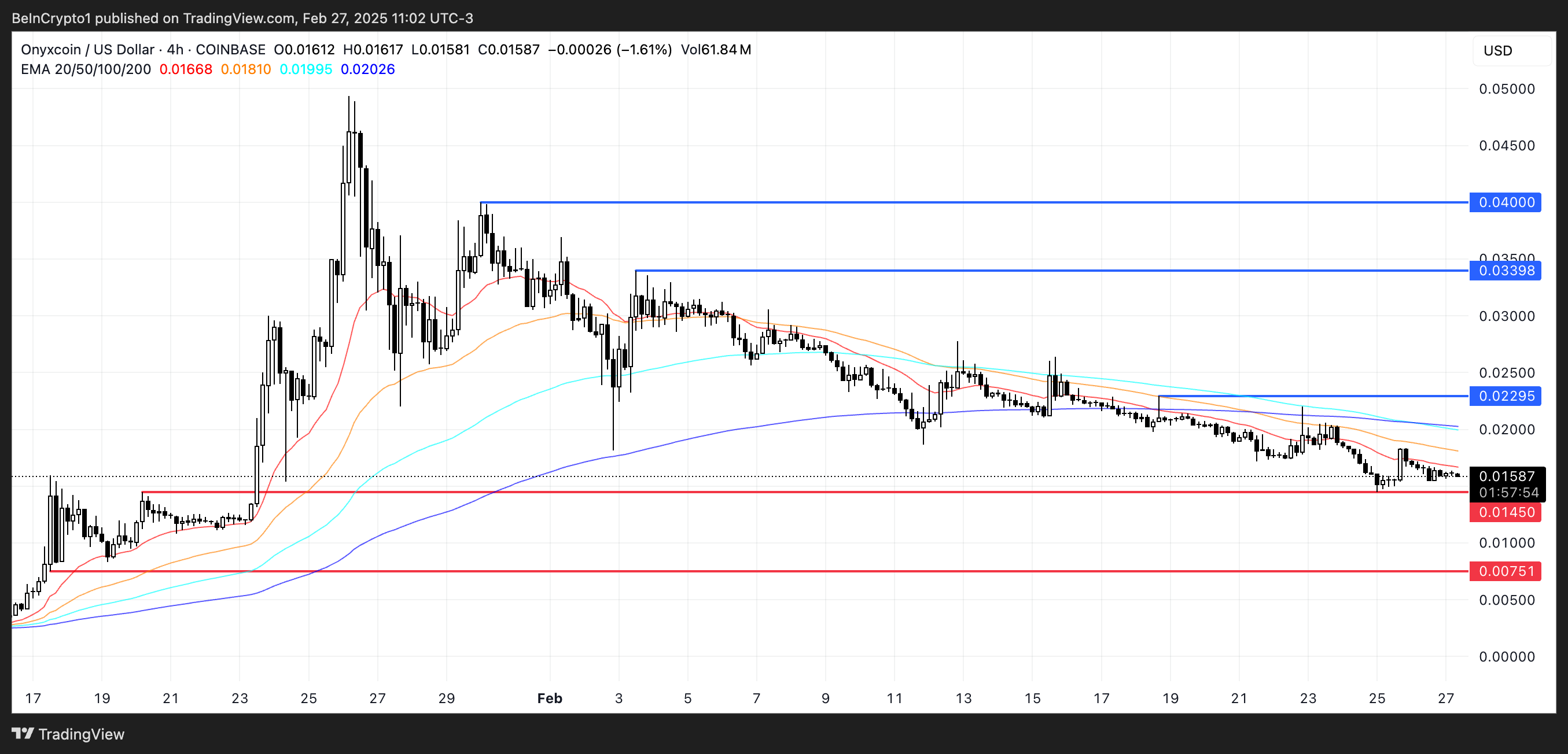 अगर डाउनट्रेंड फिर से मजबूत हुआ तो Onyxcoin 51% गिर सकता है