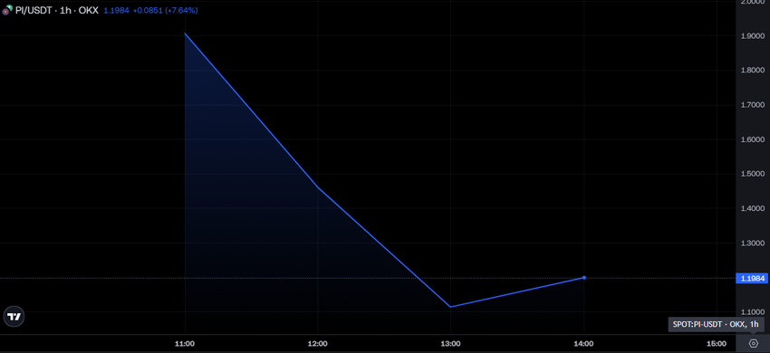 Pi Network का PI कॉइन $1.1984 पर ट्रेड कर रहा था, जो इसके लॉन्च प्राइस से 37% की गिरावट को दर्शाता है।