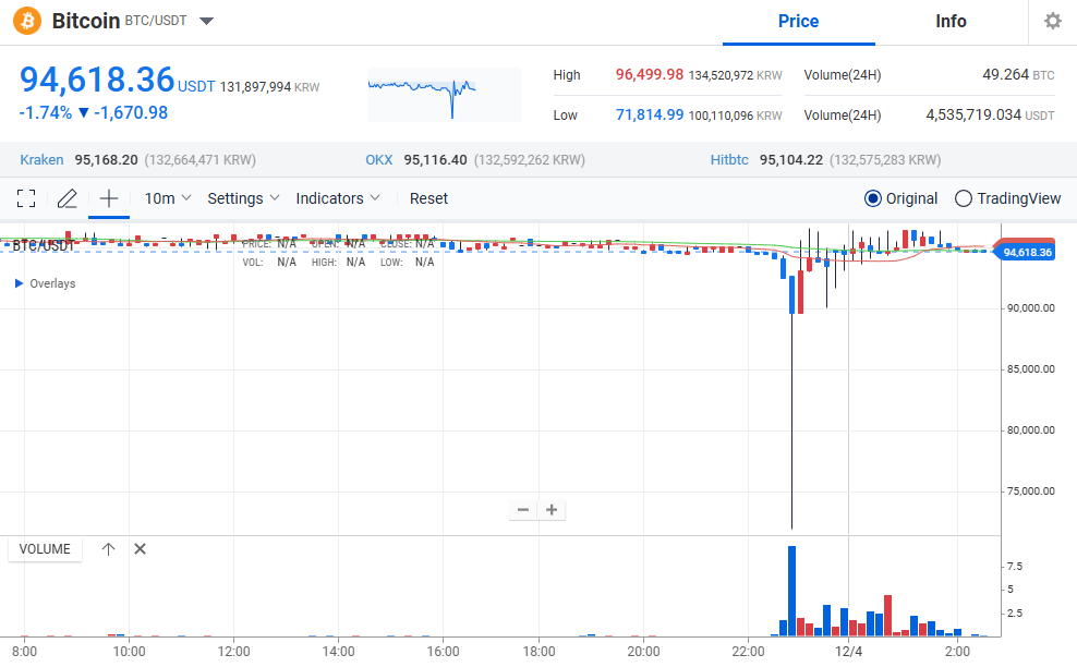 बिटकॉइन $79,000 तक गिर गया, और XRP Upbit पर $1.89 पर ट्रेड हुआ, जो एक घंटे से अधिक समय तक चला। इससे उपयोगकर्ताओं ने एक्सचेंजों पर भीड़ लगाई और इन टोकन्स को बुल मार्केट के लिए अभूतपूर्व कम कीमत पर खरीदने के लिए ऑर्डर फाइल किए।