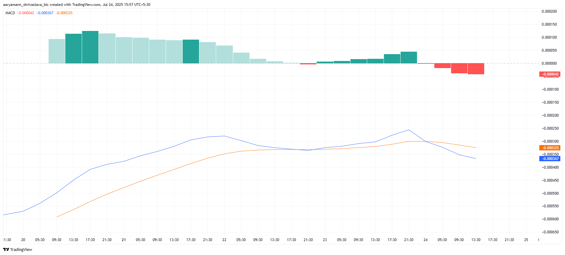 MACD (Moving Average Convergence Divergence) इंडिकेटर, जो प्राइस मोमेंटम को ट्रैक करने के लिए एक प्रमुख टूल है, ने PUMP टोकन के लिए लॉन्च के बाद पहला बियरिश क्रॉसओवर संकेतित किया है। बियरिश क्रॉसओवर बुलिश मोमेंटम के बढ़ने के बाद हुआ, जो संकेत देता है कि अब यह altcoin गिरावट का सामना कर सकता है।