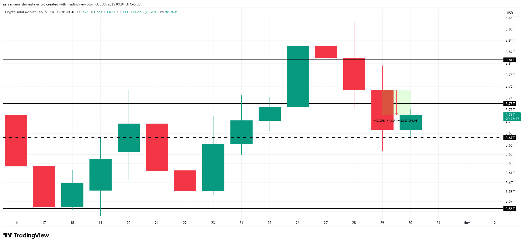 RAY RSI ओवरबॉट स्तर से नीचे है