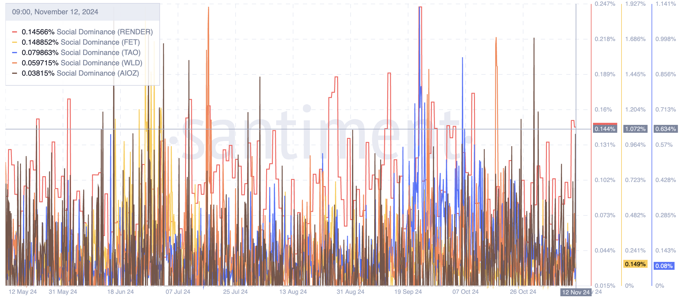 RNDR सोशल डोमिनेंस में FET के ठीक पीछे है