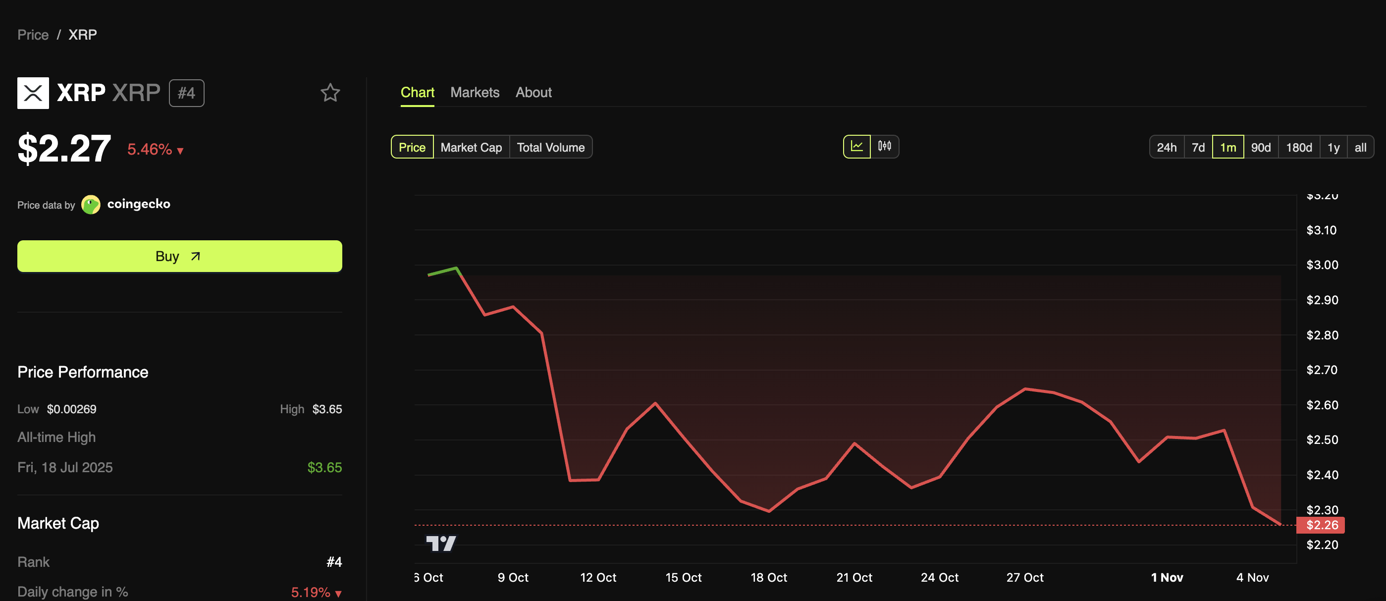 Ripple की वृद्धि के बावजूद, XRP मार्केट में अस्थिरता का सामना कर रहा है। विस्तृत मार्केट गिरावट के बीच, XRP ने अपने मूल्य का 5.46% खो दिया है, जिससे इसकी साप्ताहिक गिरावट लगभग 15% तक बढ़ गई है। प्रेस समय पर, यह $2.27 पर ट्रेड कर रहा था।
